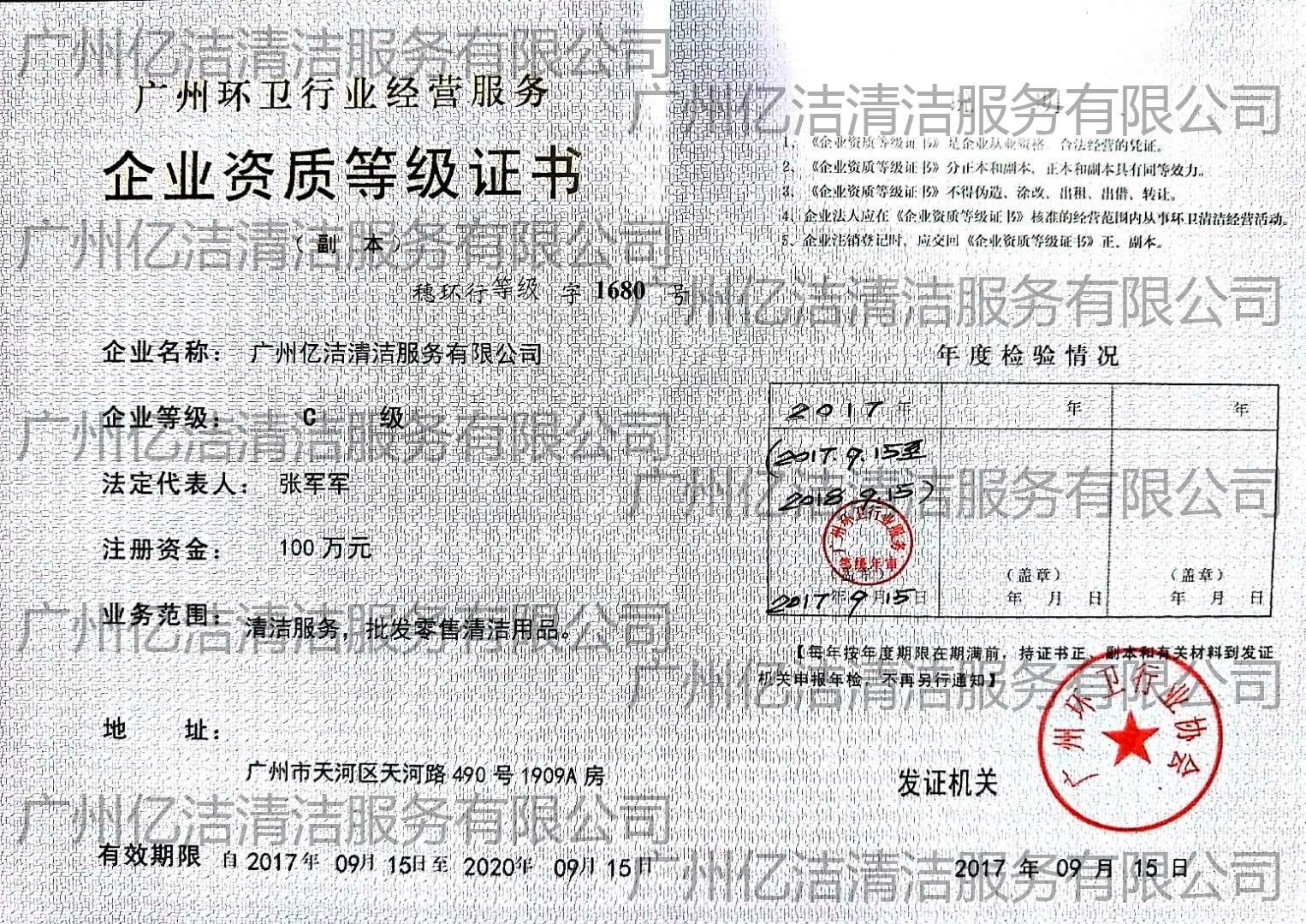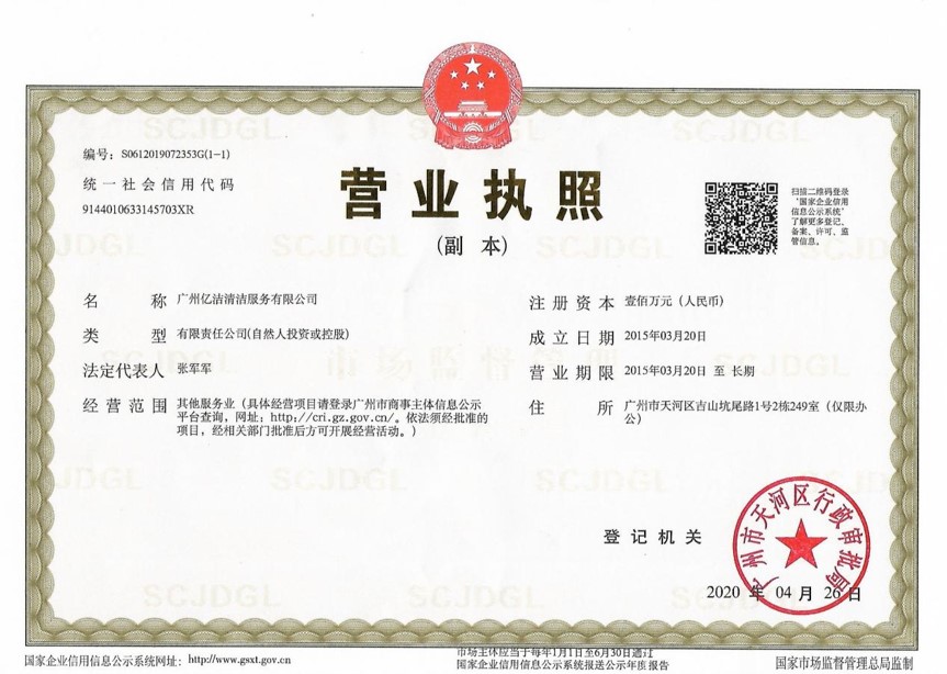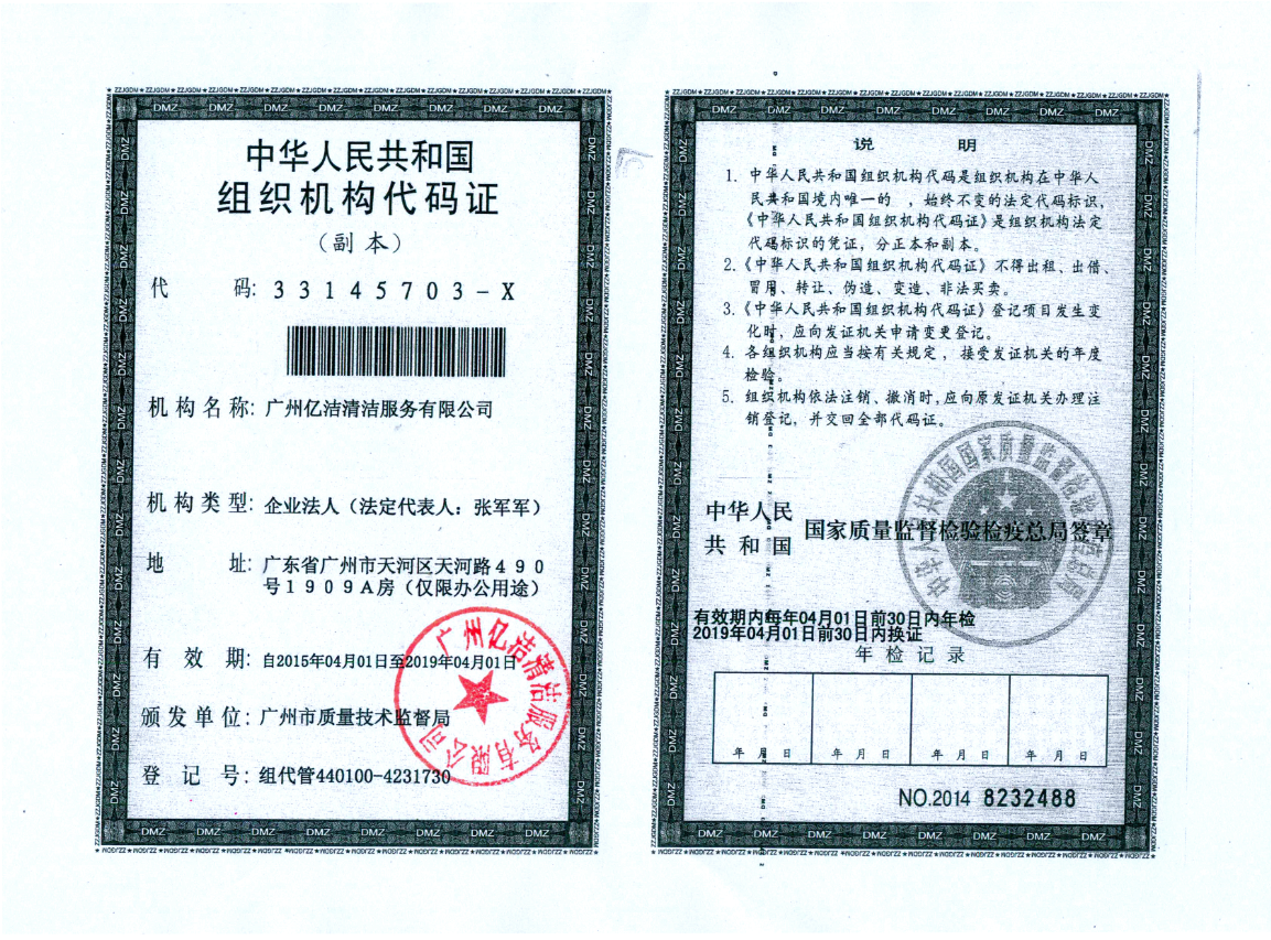 廣州億潔清潔服務(wù)有限公司是經(jīng)廣州市工商行政管理局批準(zhǔn)成立的(注冊資本:100萬元人民幣)。具有獨立法人資質(zhì)。公司成立2015年,公司具備完善的管理體系和高素質(zhì)管理隊伍,擁有特種技術(shù)人員33名,保潔服務(wù)人員上萬名,覆蓋廣州市,能及時調(diào)配并快速投入高效運行。我們的每個員工都經(jīng)過公司的嚴(yán)格篩選,嚴(yán)格培訓(xùn),定期培訓(xùn)后持證上崗以保證服務(wù)品質(zhì),保障客戶的權(quán)利,利益,形象等不受損失。 廣州億潔清潔公司是一家設(shè)備齊全,技術(shù)強大的綜合型清潔服務(wù)公司,為客戶提供完善服務(wù)尊定了堅定的基礎(chǔ)。 司于2010年全面推行了ISO9001質(zhì)量管理體系認(rèn)證和ISO14001國際環(huán)保體系認(rèn)證。先后獲得廣州高層建筑外墻清洗維修作業(yè)【安全資質(zhì)證書】、【廣州環(huán)衛(wèi)企業(yè)等級證書C級資質(zhì)】、廣州疾控中心頒發(fā)的【四害消殺服務(wù)資質(zhì)證】、【空氣治理A級資質(zhì)】、中國石材協(xié)會頒發(fā)的【石材資質(zhì)B級資質(zhì)】等。 廣州億潔清潔服務(wù)有限公司致力于打造專業(yè)、實惠、靠譜的保潔服務(wù)公司,把專業(yè)的事情交給專業(yè)的我們,您放心! 億潔清潔服務(wù)項目: 廣州保潔服務(wù):新建樓宇、別墅、酒店、醫(yī)院、辦公樓、賓館、企事業(yè)單位廠房竣工后開荒及裝修后精細(xì)保潔.工程保潔服務(wù)。 廣州物業(yè)托管:為廣州市各大企事業(yè)單位、賓館、政府機關(guān)、小區(qū)物業(yè)、酒店及廠房提供專業(yè)化保潔、園林、設(shè)施維護等管理服務(wù)。 廣州高空作業(yè):高空玻璃幕...[詳情]